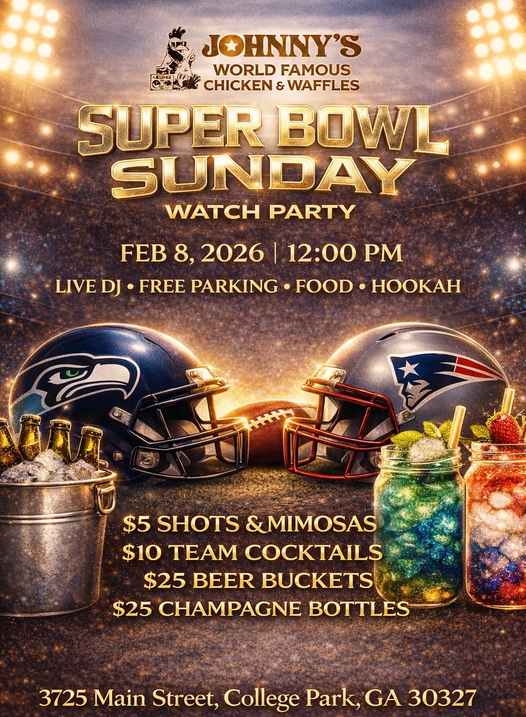 Super Bowl Sunday February 22, 2026 11:00 AM until February 22, 2026 Offer available at Johnnys College Park