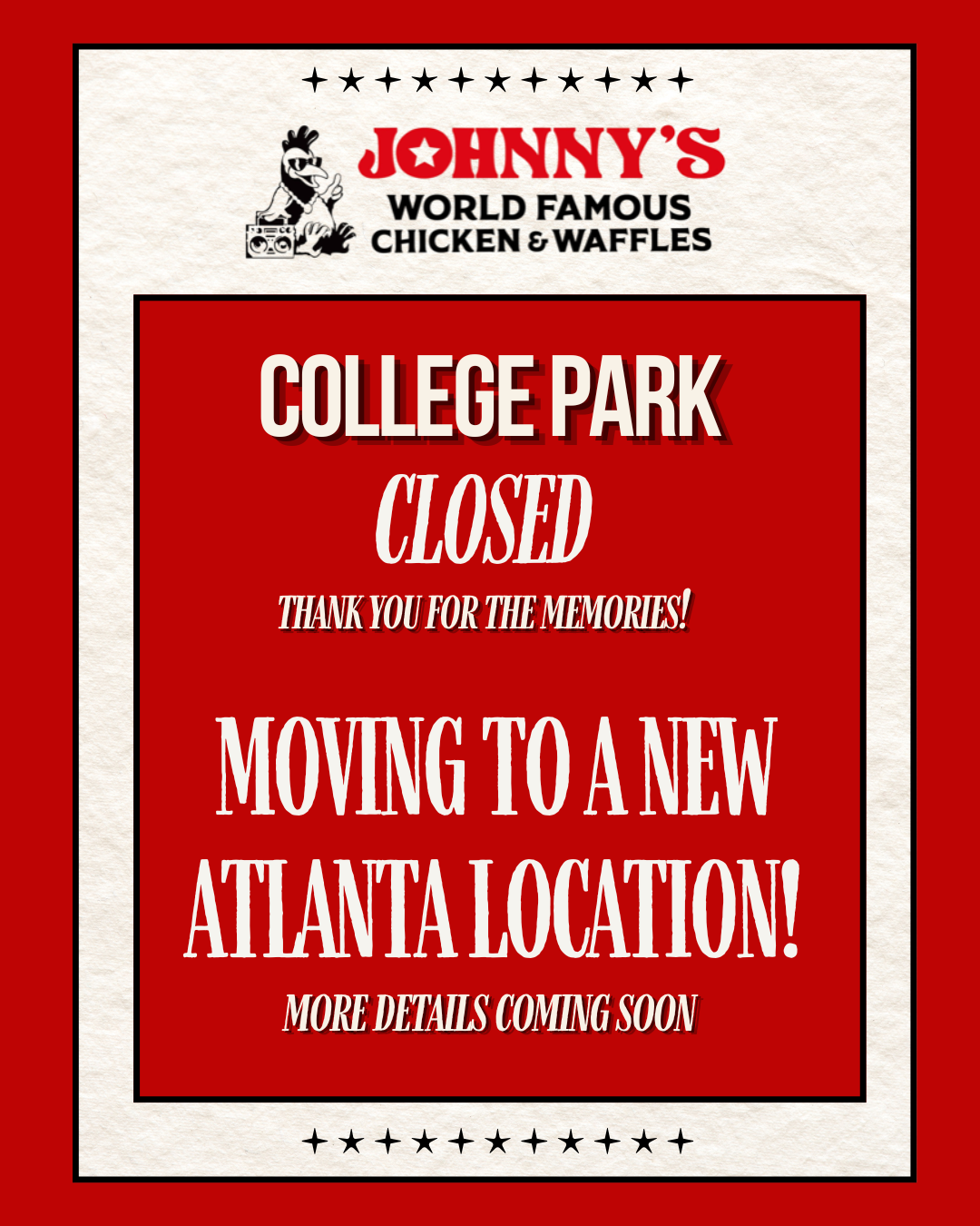We will be moving to a new Atlanta location, stay tuned for more details coming soon!